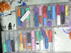 Children who have their birthdays straddle the dinosaur of the month. The frieze help the children to see when they have their birthday. The dinosaurs are made with templates, outlined with a pencil, colored with chalk and varnished.I made a picture of each child and glued it on the right dinosaur . Each child made one or two dinosaurs, 12 were chosen to represent the months and the others were stuck on a board with the name of the child. |