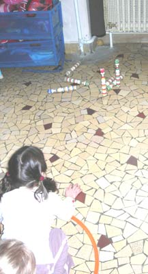 | Les quilles sont un jeu d'adresse qui plaît beaucoup aux enfants. Par petits groupes de deux ou trois, ils lancent chacun à leur tour la balle et comptent le nombre de quilles qu'ils ont fait tombé. Cela leur donne un nombre de points qu'ils peuvent ensuite cumuler, en fonction de leur niveau en math. | |