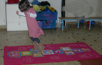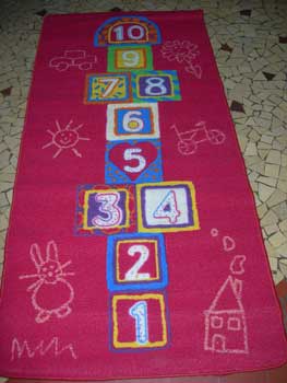 un tapis de marelle peut servir à compléter un atelier ou à en constituer un si on a de tout petits effectifs par groupe (3 ou 4).
