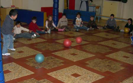 Les enfants forment une ronde et s'assoient les jambes écartées, pied contre pied. L'un d'entre eux se place à l'intérieur de la ronde : c'est le lapin. Il ne doit pas être touché par les chasseurs. On donne aux chasseurs 2 ballons, puis 3 ou 4. Le lapin doit les éviter. S'il est touché, il prend la place du chasseur qui l'a touché et le chasseur devient lapin.